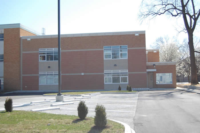 Entrance of new addition southwest side and student drop-off